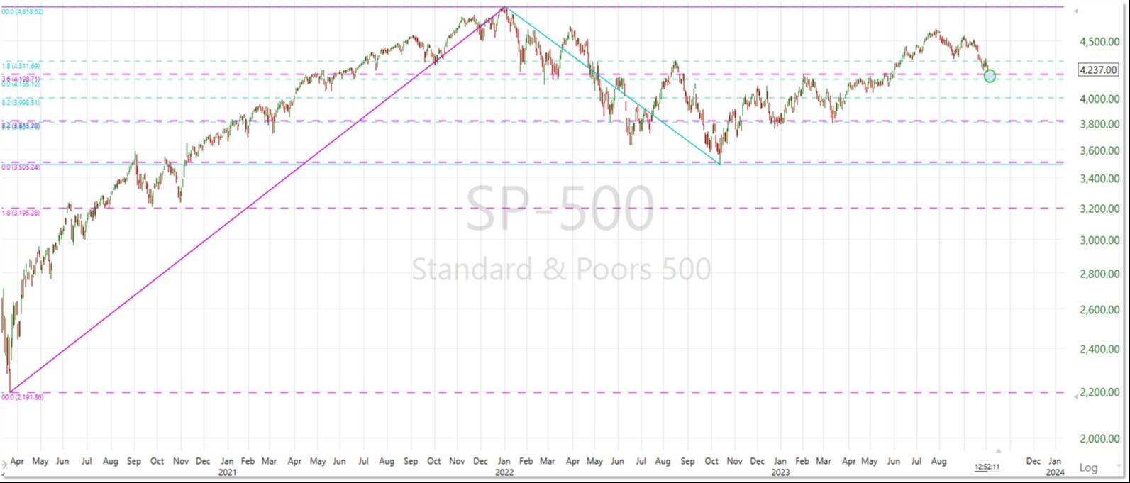 Chart 4 – Less than 1% from an important Fibonacci level (the 23.6 retracement) of the move from the March 2020 Covid low to the January 2022 high.